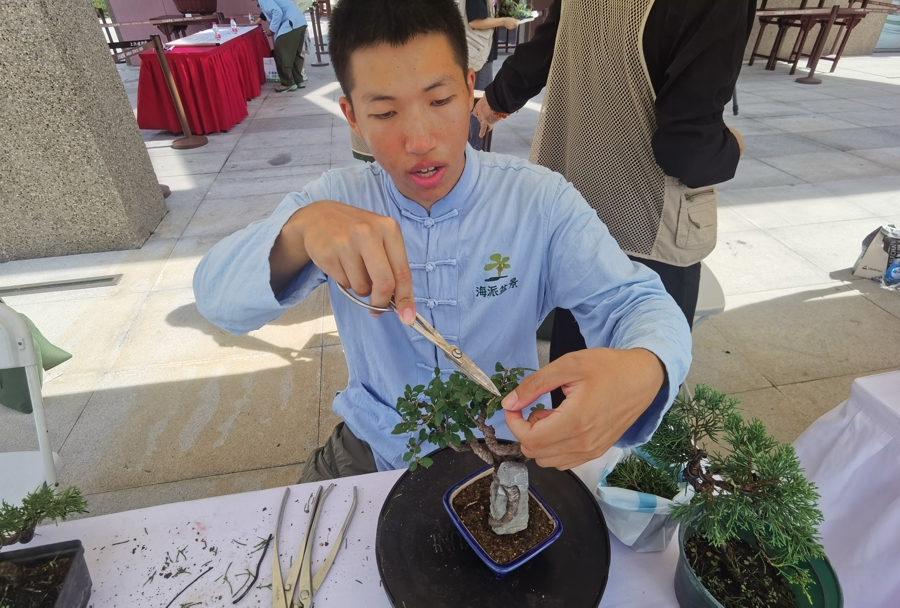 迷你的盆景更受年轻人喜爱。 陈玺撼摄