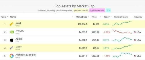 而从市值来看聚宝盆配资,随着周三逾4%的新一轮大涨行情展开,白银的市值目前已超越了近来风头正盛的AI“当红炸子鸡”谷歌,跻身成为了全球第四大资产——目前市值规模仅低于黄金、英伟达和苹果。